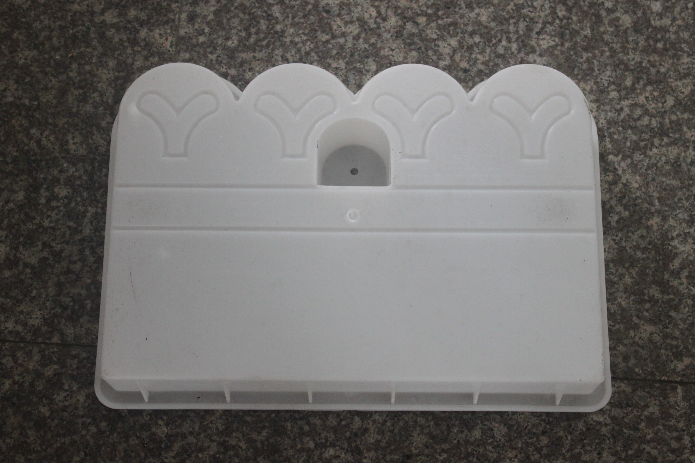 一款比較常規(guī)的水泥花池磚模具,模具花紋樣式也是市面上較為常見(jiàn)的人字小腳丫圖案設(shè)計(jì),花池磚模具頂部則以圓弧四波浪結(jié)構(gòu)為主,感覺(jué)有點(diǎn)像花池柵欄的味道,但是實(shí)用性則更強(qiáng)。