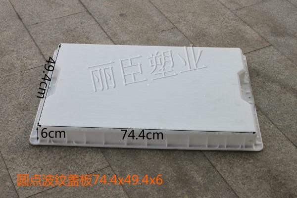 波浪紋防滑圖案設(shè)計的預(yù)制邊溝蓋板模具,根據(jù)人行實際需求,采用13道波浪紋突筋規(guī)劃,所預(yù)制水泥邊溝蓋板表面波浪線條凹凸有致,別具一格。主要水泥蓋板澆筑體積長度為74.4厘米,寬度為49.4厘米,高度則為6厘米,詳細請參考下圖: