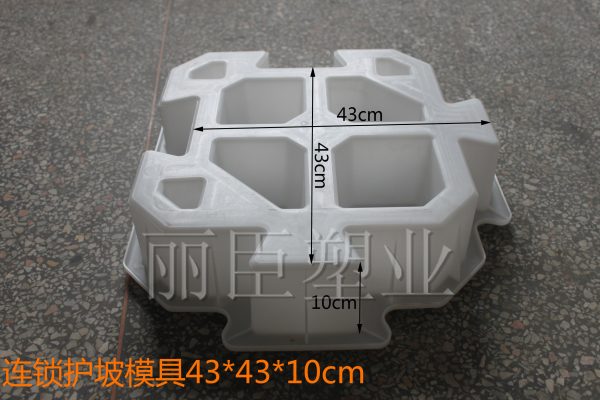 一款比較新穎的自鎖式護(hù)坡磚模具,廣泛運(yùn)用于水利護(hù)坡設(shè)施項(xiàng)目,麗臣品牌護(hù)坡磚模具均采用聚丙烯塑料,質(zhì)量更為穩(wěn)定。由于其可靠的自鎖形式,是生態(tài)護(hù)坡穩(wěn)定運(yùn)行的一個(gè)重要基本要素,大量預(yù)留可植草間隙,更是提升了這個(gè)生態(tài)護(hù)坡模具所制自鎖式護(hù)坡磚的可操作性。