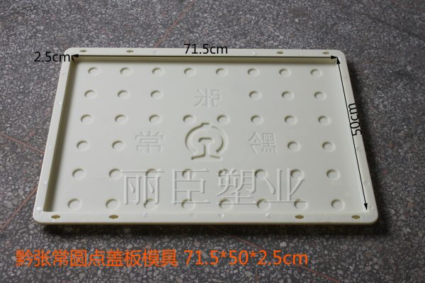 黔張常高速鐵路專用水泥蓋板模具,主要樣式印有鐵路圖案標志及“黔張常”字樣,整體以圓點防滑設計,采用此水泥蓋板模具所澆筑成型水泥蓋板表面圓點突兀,圖案及字樣清晰且脫模更易,是一款非常優(yōu)質(zhì)的ABS塑料蓋板模具。