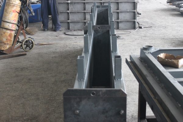 1.擋土墻鋼模具欄片部分,經(jīng)裁剪焊接完成,是各部分中最為關(guān)鍵的組成部件。