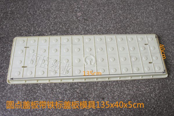 這款四孔圓點蓋板模具的尺寸為長135cm、寬40cm、高為5cm,用料上采用穩(wěn)定性較強的ABS為注塑原料,在澆筑水泥制品過程中能更好的保證砼制品模具不會發(fā)生變形,在對蓋板模具的四周添加了加強筋,小三角樣式更好的支撐塑料蓋板模具邊緣。