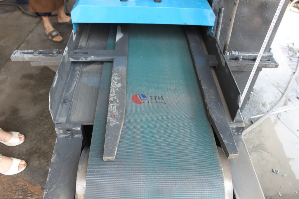 制作這臺(tái)多功能成型機(jī)的技術(shù)員在對(duì)這臺(tái)機(jī)器出廠前進(jìn)行了最后一步的調(diào)試,將澆筑成型的水泥磚放置輸送帶上,成型機(jī)入口處與出口處都有配置供水系統(tǒng),防止在制作過(guò)程中塵土飛揚(yáng),能對(duì)水泥制品打磨過(guò)程中其表面更為整潔統(tǒng)一。經(jīng)過(guò)平磨系統(tǒng)對(duì)水泥模具澆筑成型的水泥制品進(jìn)行磨形,后進(jìn)入第二系統(tǒng)對(duì)水泥磚塊制品就進(jìn)行拉條紋,這款多功能側(cè)石二工位條紋成型機(jī)打磨成型的條紋彩磚的外觀以34條紋為主。打磨成型后在有輸送帶將水泥磚運(yùn)輸出來(lái)。其使用過(guò)程中為防止施工過(guò)程中的安全事故的發(fā)生,通過(guò)使用電控箱的方式來(lái)對(duì)機(jī)器進(jìn)行急??刂?。
