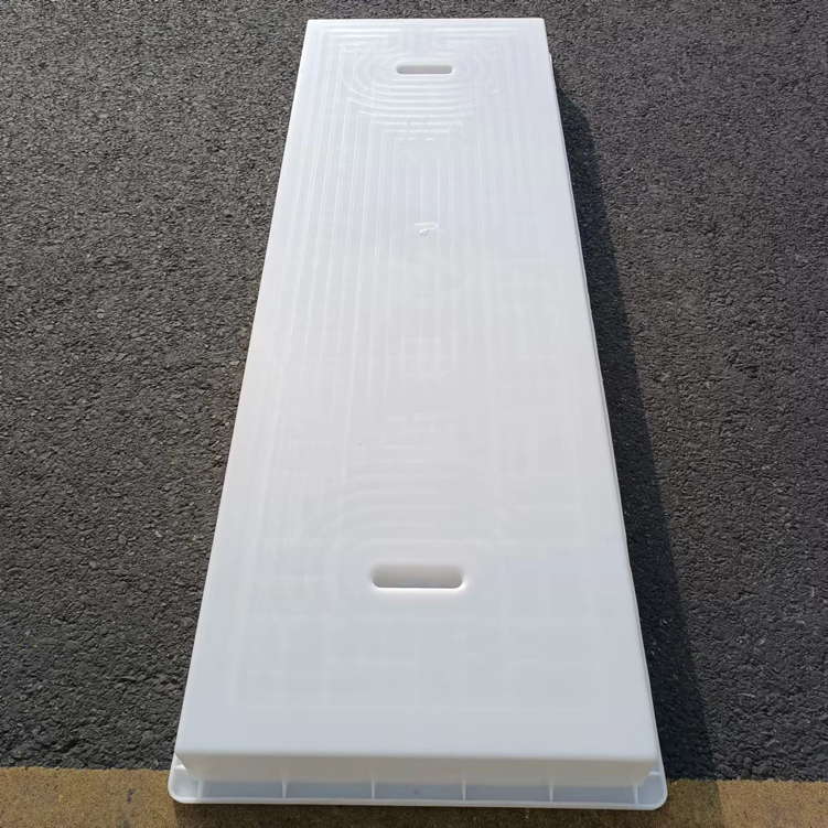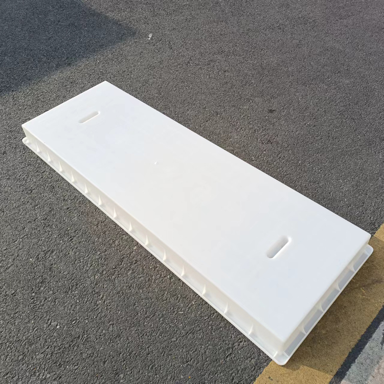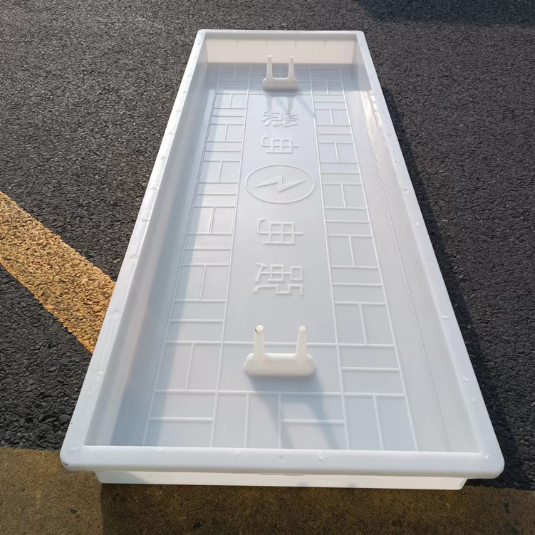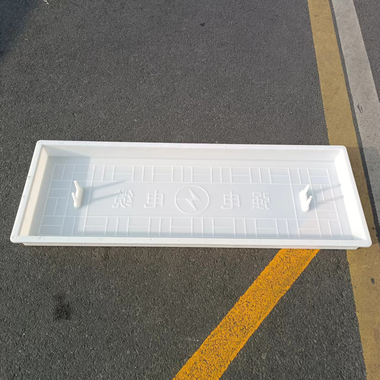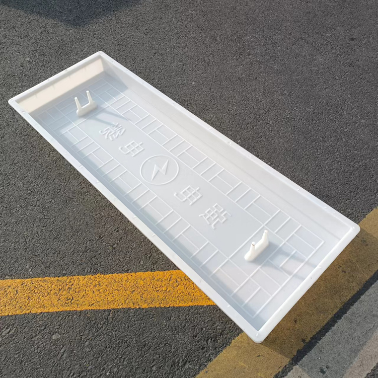 這款蓋板整體采用米白色pp材質(zhì)制成、也可以使用ABS材質(zhì)制成都可,模具有戴預(yù)埋件和不帶預(yù)埋件兩種,且做ABS材質(zhì)的模具標(biāo)準(zhǔn)尺寸為150cm*50cm*10cm,ABS材質(zhì)模具質(zhì)量比做PP材質(zhì)模具好一些,做PP材質(zhì)模具尺寸會(huì)縮小一些,主要由于材料的性質(zhì)不同,會(huì)縮小尺寸為千分之九。蓋板中間有戴電力標(biāo)志,兩側(cè)帶字,帶有“電力電纜”四字。