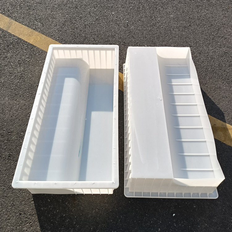 路緣排水溝塑料模具產(chǎn)品,主要是路緣石預(yù)制,二維尺寸設(shè)計(jì)圖如下,主要是市政道路、小區(qū)使用。預(yù)制成品模具可重復(fù)多次使用。